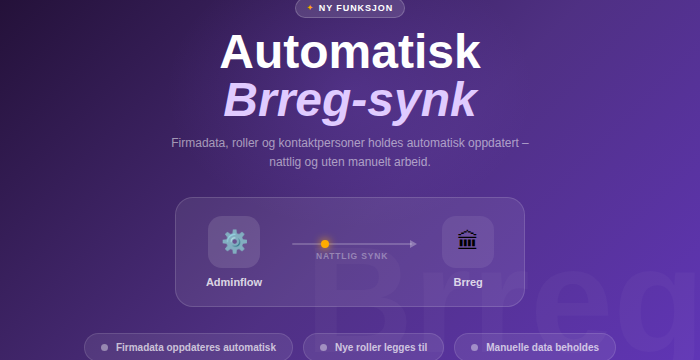 Vi har nå lansert en ny funksjon i Adminflow som gjør det enklere å holde klientinformasjon oppdatert mot Brønnøysundregistrene – helt automatisk.