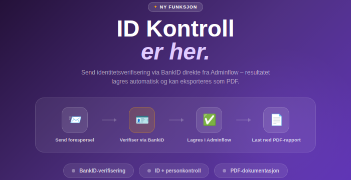 Vi håper denne funksjonen gjør det enklere å gjennomføre og dokumentere ID-kontroller direkte i Adminflow. 🚀
